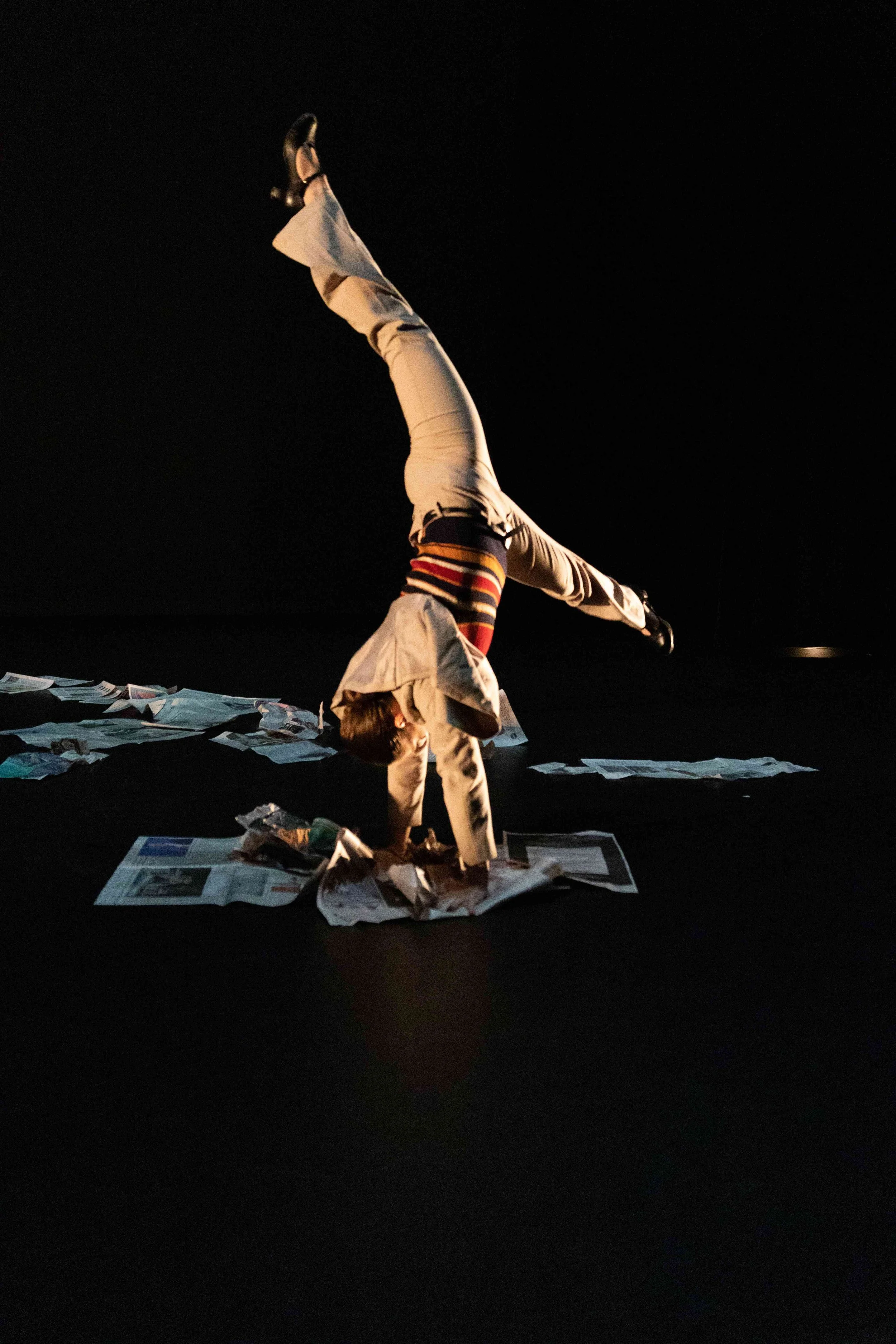 Me Time is a solo exploring the struggle to find personal peace in a world demanding constant composure. Through newspapers, deep breaths, and a cigarette, the dancer navigates the exhausting tightrope women walk as they are told to meditate instead of scream, smile instead of protest, and relax in a world that offers many reasons to seethe.